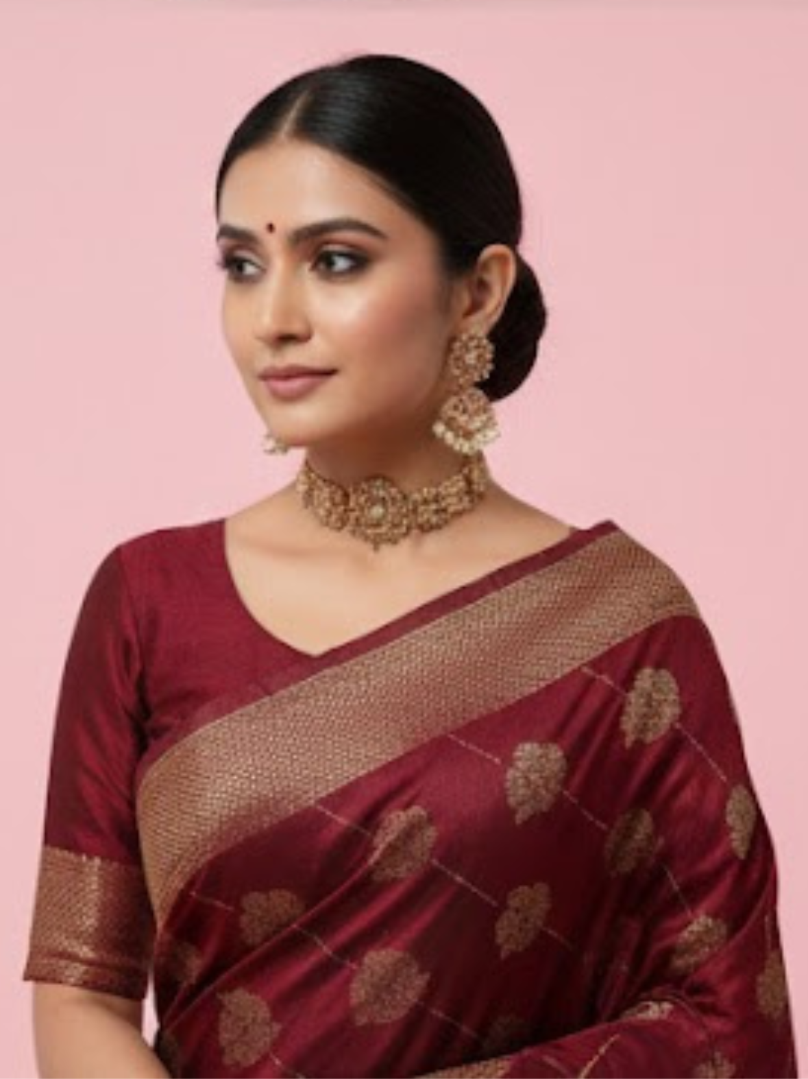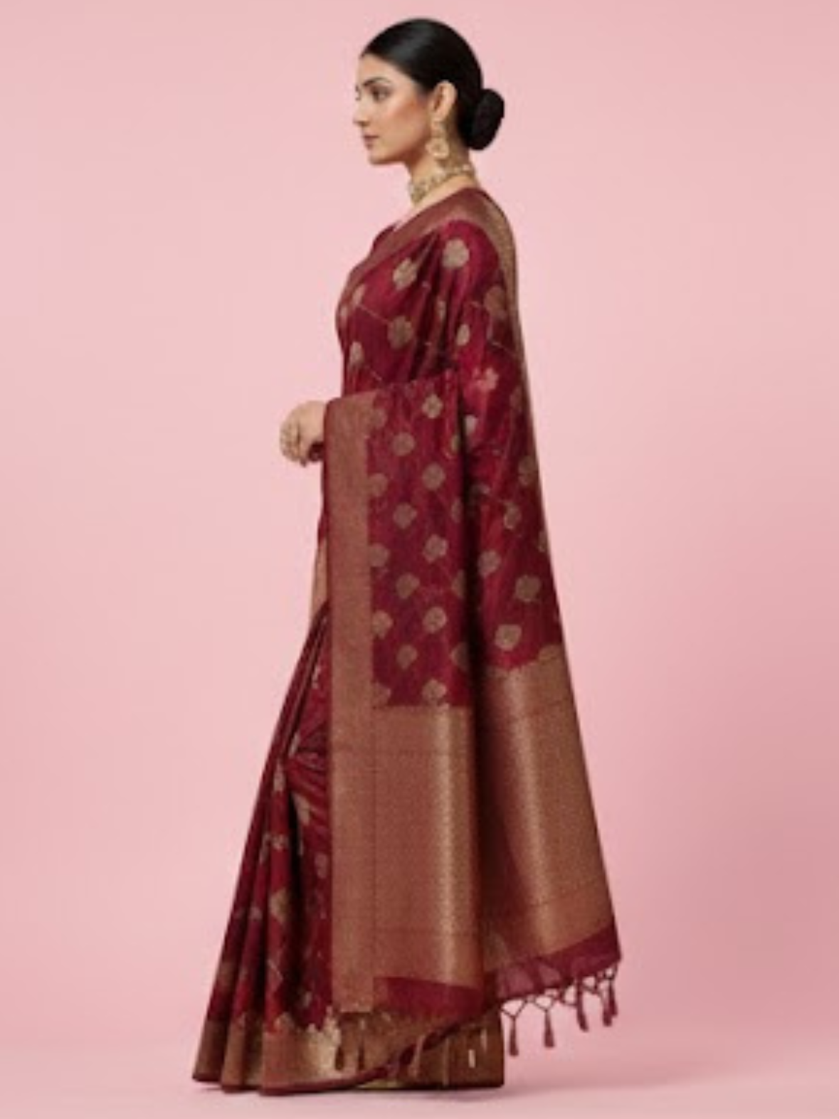 Premium Banarasi Style Maroon Art Silk Saree from Usha Garments.